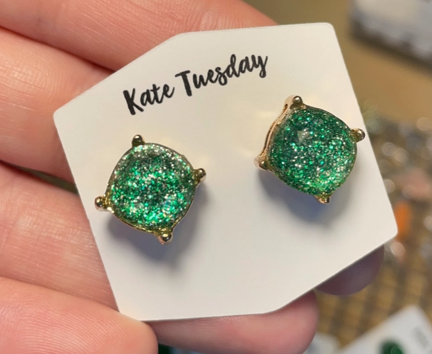Emerald Green Glitter Stud Earrings