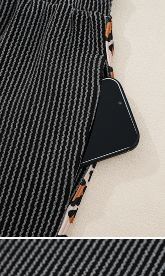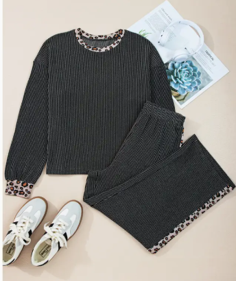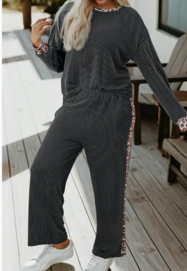 Rib Texture Leopard Patchwork Detail 2pcs Pant Set (S-Xl)