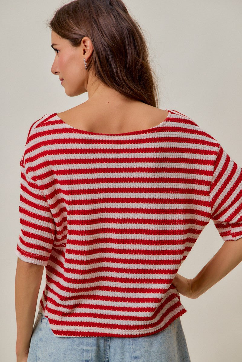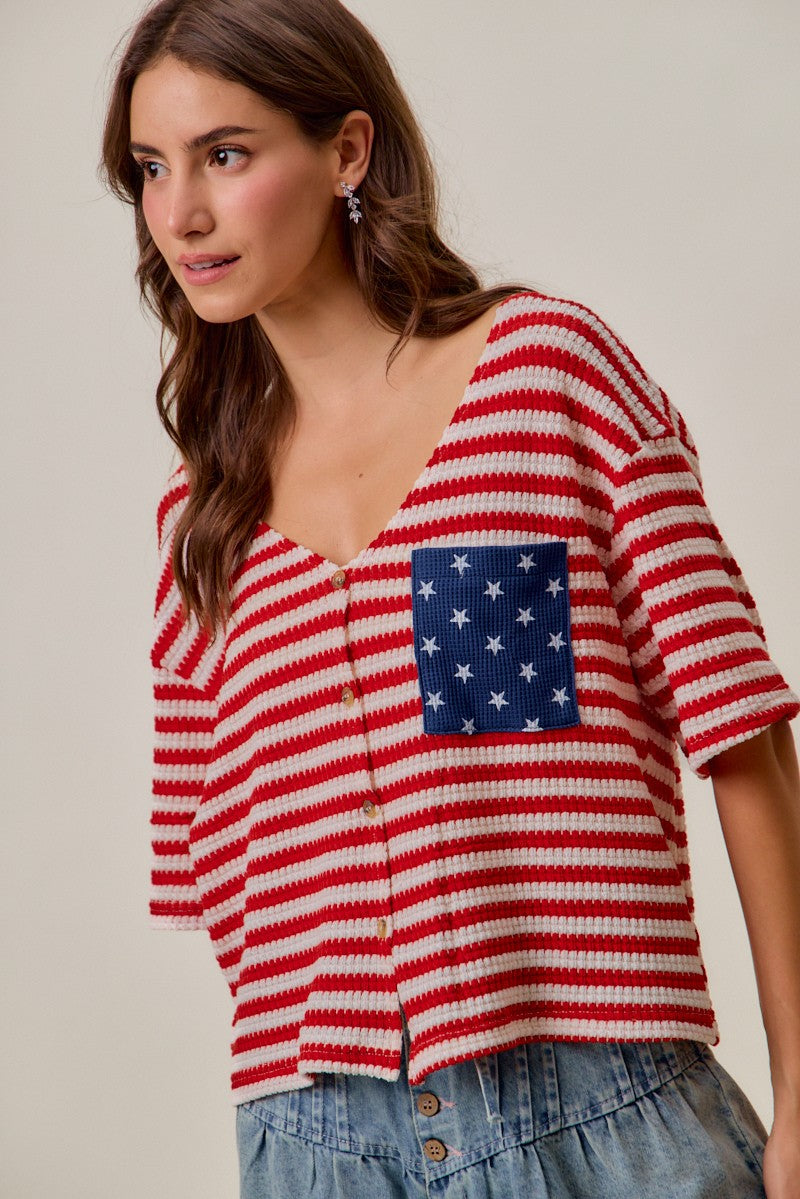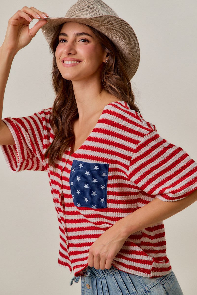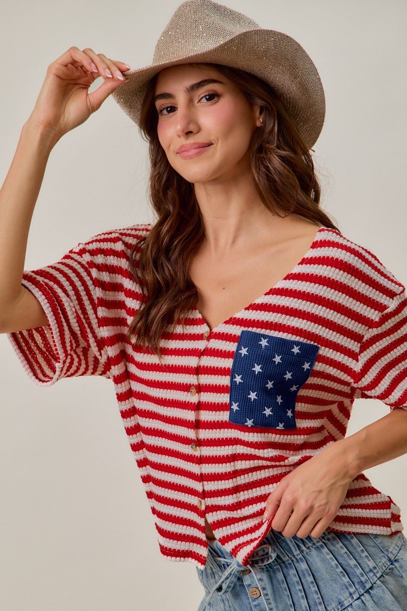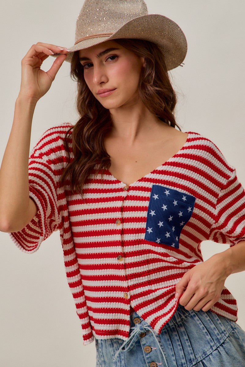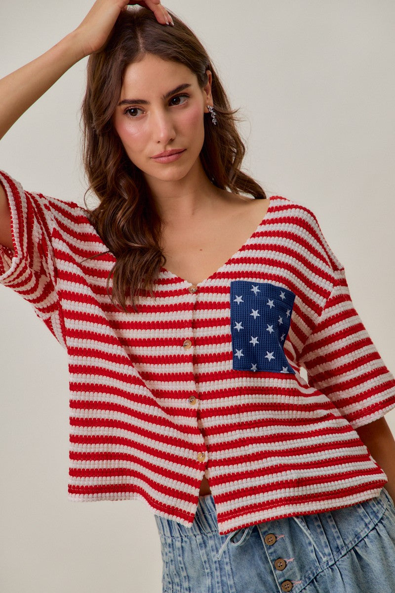 SO ME Stripe Waffle Knit Fourth Of July Cardigan Top