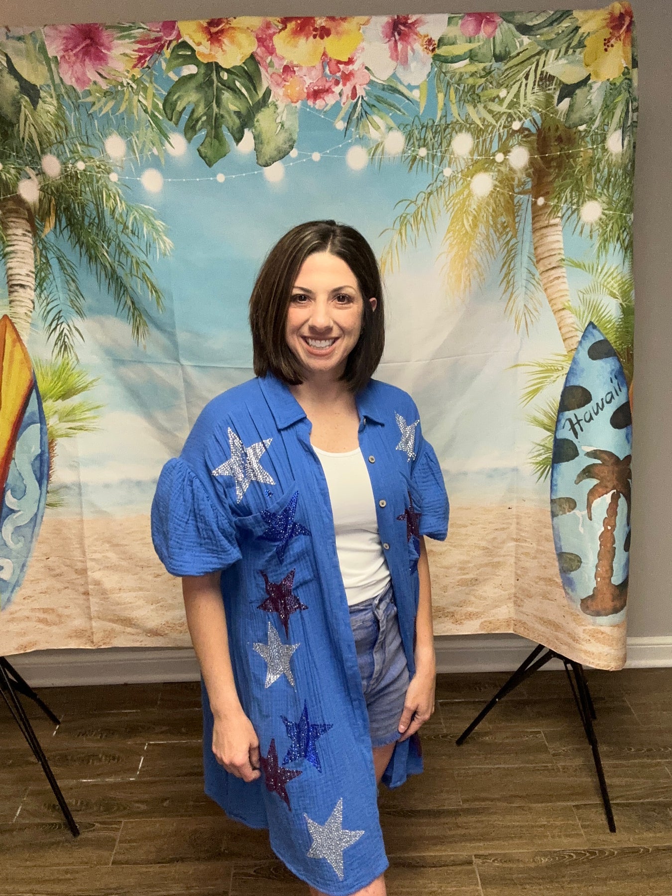 Rhinestone stars puff dress is the ultimate party dress. Surprise! You can also wear it as a fancy button down shirt. Can be worn both ways and is a definite showstopper! Part of our lap of luxury collection and comes sizes S-L.